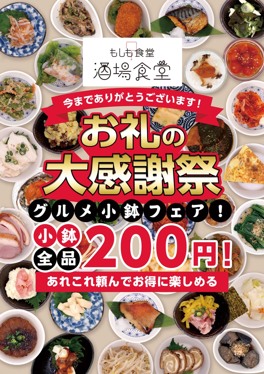 東京・渋谷の商業施設「東急プラザ渋谷シブヤグラン食堂」内の「もしも食堂」は、2024年3月末で閉店となるのに際し、最終月の3月いっぱいをグランドフィナーレとして、これまでご来店いただいた皆様への感謝気持ちを込めて「お礼の大感謝祭 グルメ小鉢フェア!」を開催します。