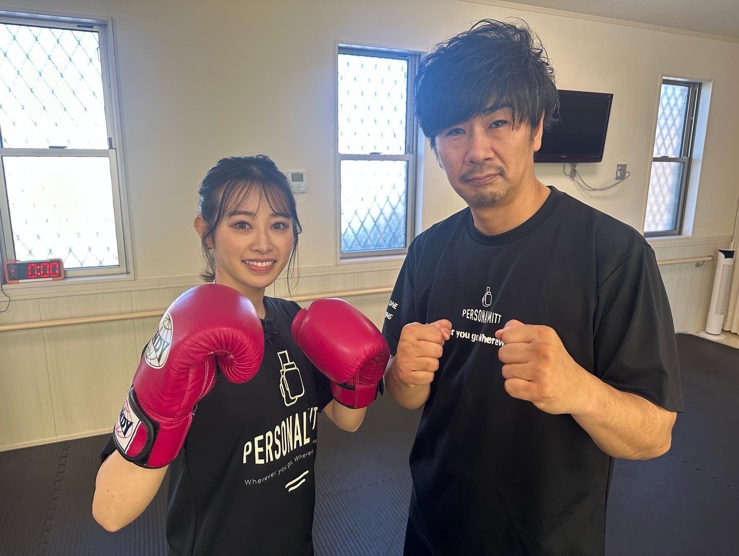 インタビュー後にリポーターの高野桃子さんにミット打ちの体験をしていただきました。