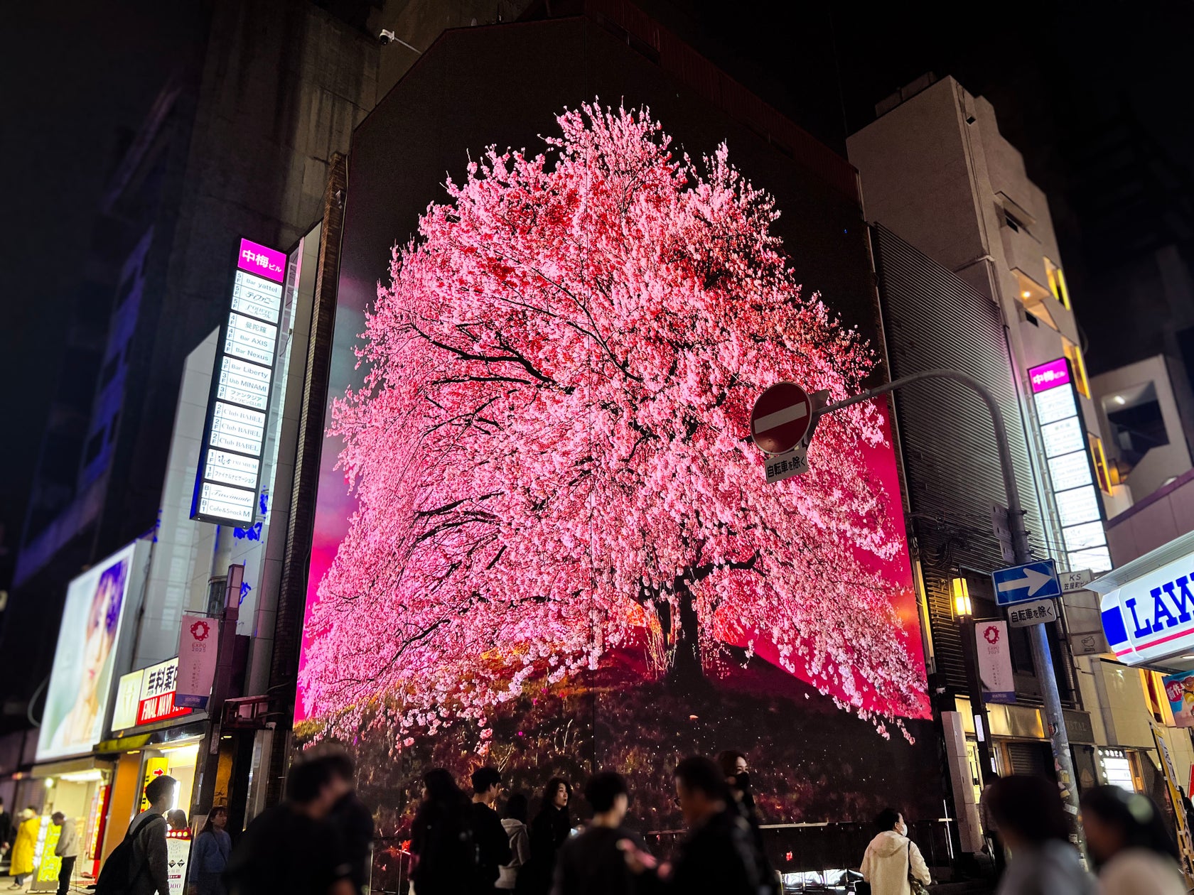 地上13m級の高さまでそびえたつ桜は2D映像ながら思わず立ち止まって見てしまう迫力があります。日本三大桜のひとつ、福島県の三春瀧桜の高さが13.5mという事実からも、その大きさが想像できるのではないでしょうか。