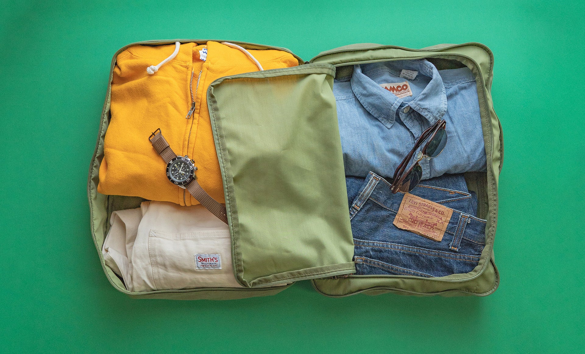 内側真ん中に仕切りがついていて、荷物の種類や1日目と2日目の着替えを分けることができます。