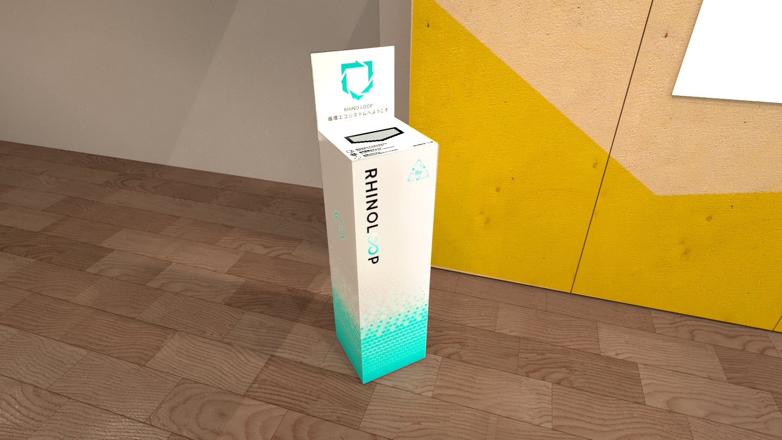 イベント会場に使用しなくなったスマホケースを回収するリサイクルBOXを設置。ライノシールド以外の他社のスマホケースも回収可能です。ここで回収されたスマホケースは、リサイクルされ将来的にライノシールドの他の製品の素材として再利用される予定です。