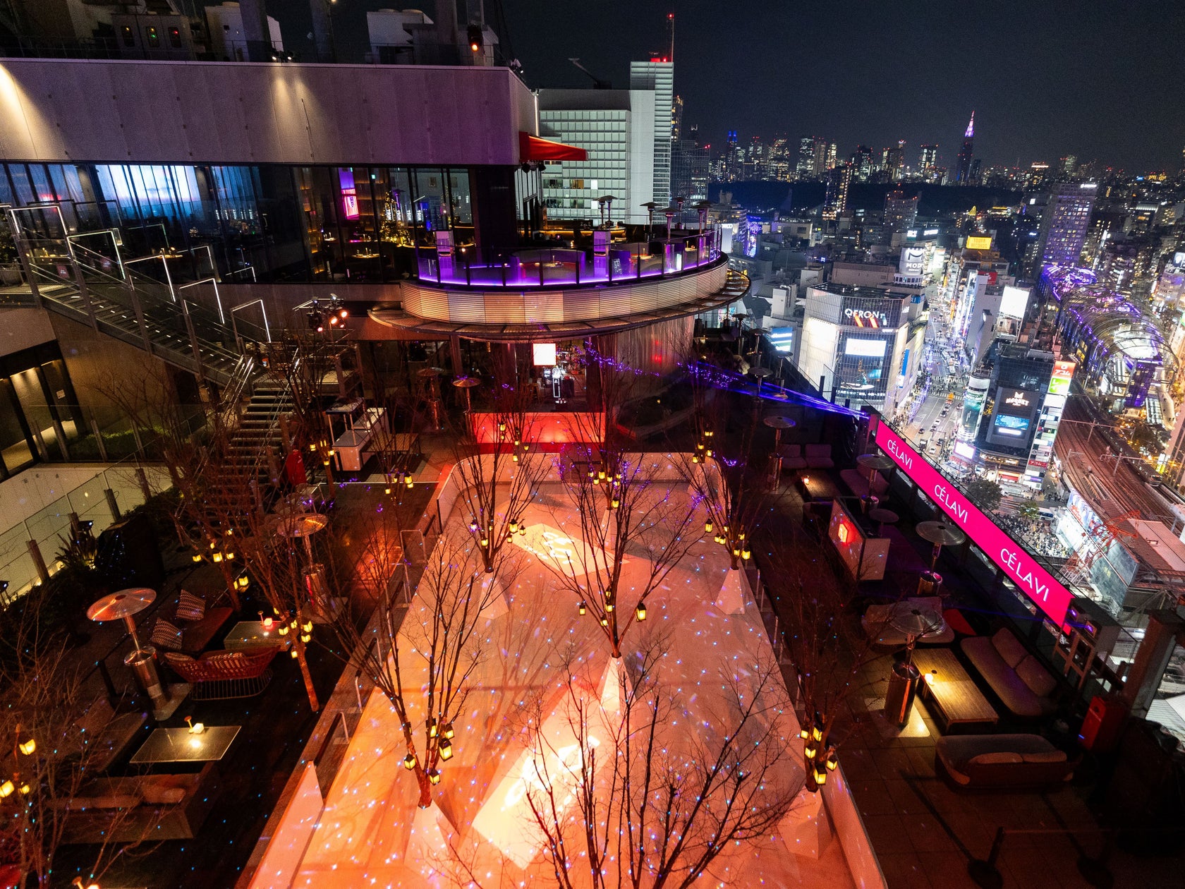 日中の渋谷の空を見上げられる開放的な空間は、夜にはイルミネーションと煌びやかな夜景に囲まれた大人の雰囲気の空間に様変わりし、お子様連れのお出かけから、カップルでのデートまで様々な方にお楽しみいただけます。