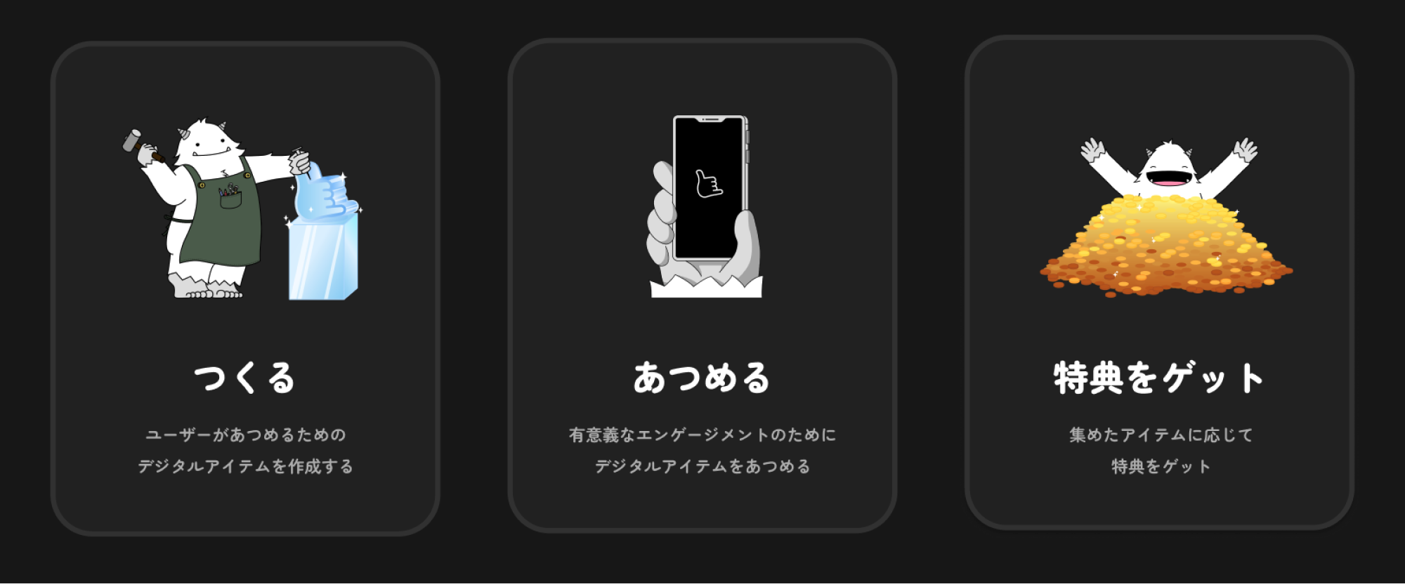 次世代のロイヤルティシステム作成のためのプラットフォーム。コミュニティやクリエイターのためのNFTの作成・活用ツールキットや、NFTコレクターのためのスマートフォンアプリ「Callbackウォレット」を提供。これまで、大企業、クリエイター、イベントなどに対して数々のエンゲージメントの高いロイヤルティシステムの作成を実現。