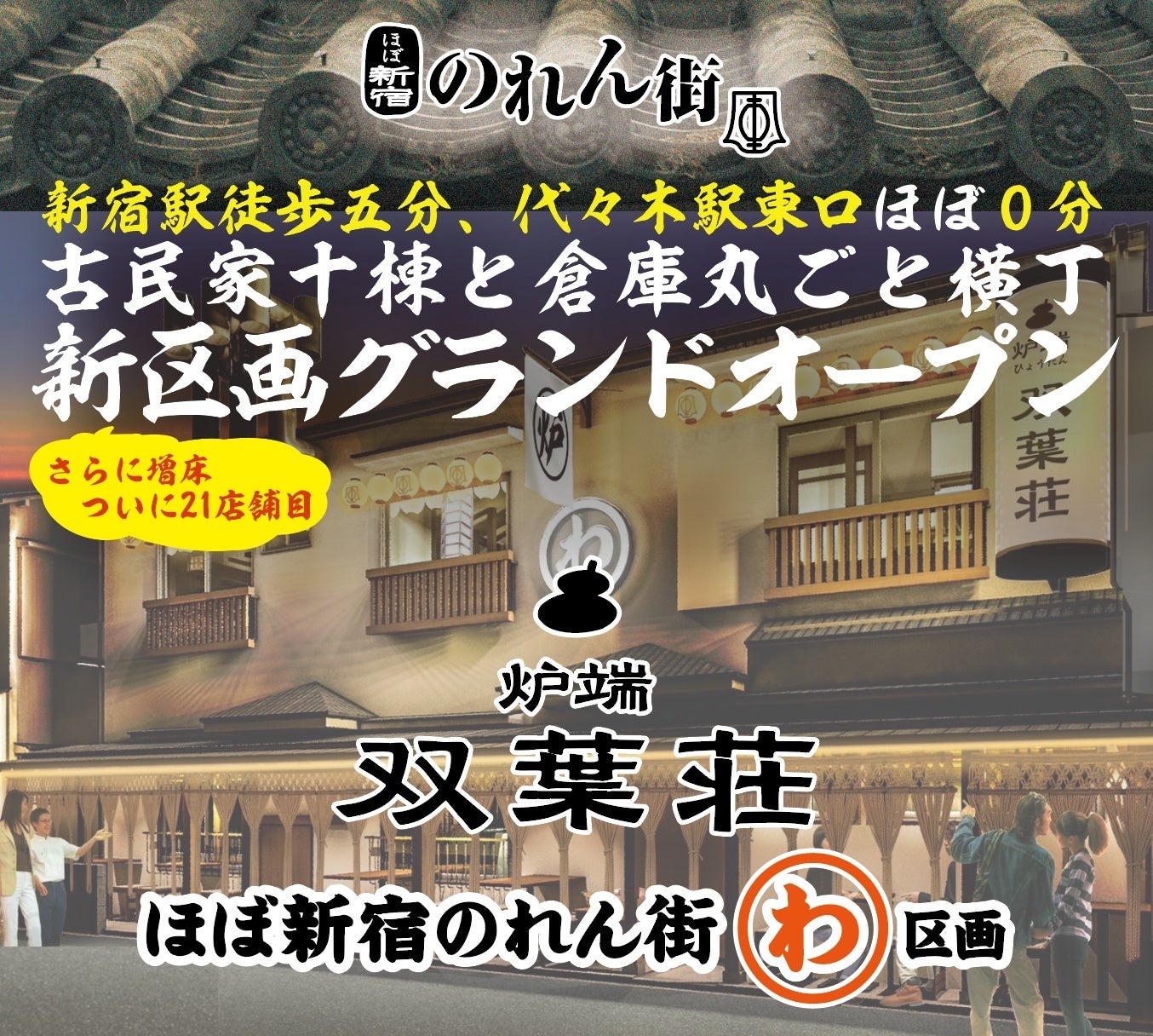 古民家十棟に倉庫丸ごと横丁。新たな店舗が増えて、さらにパワーアップし楽しくなるほぼ新宿のれん街にご期待ください!!
