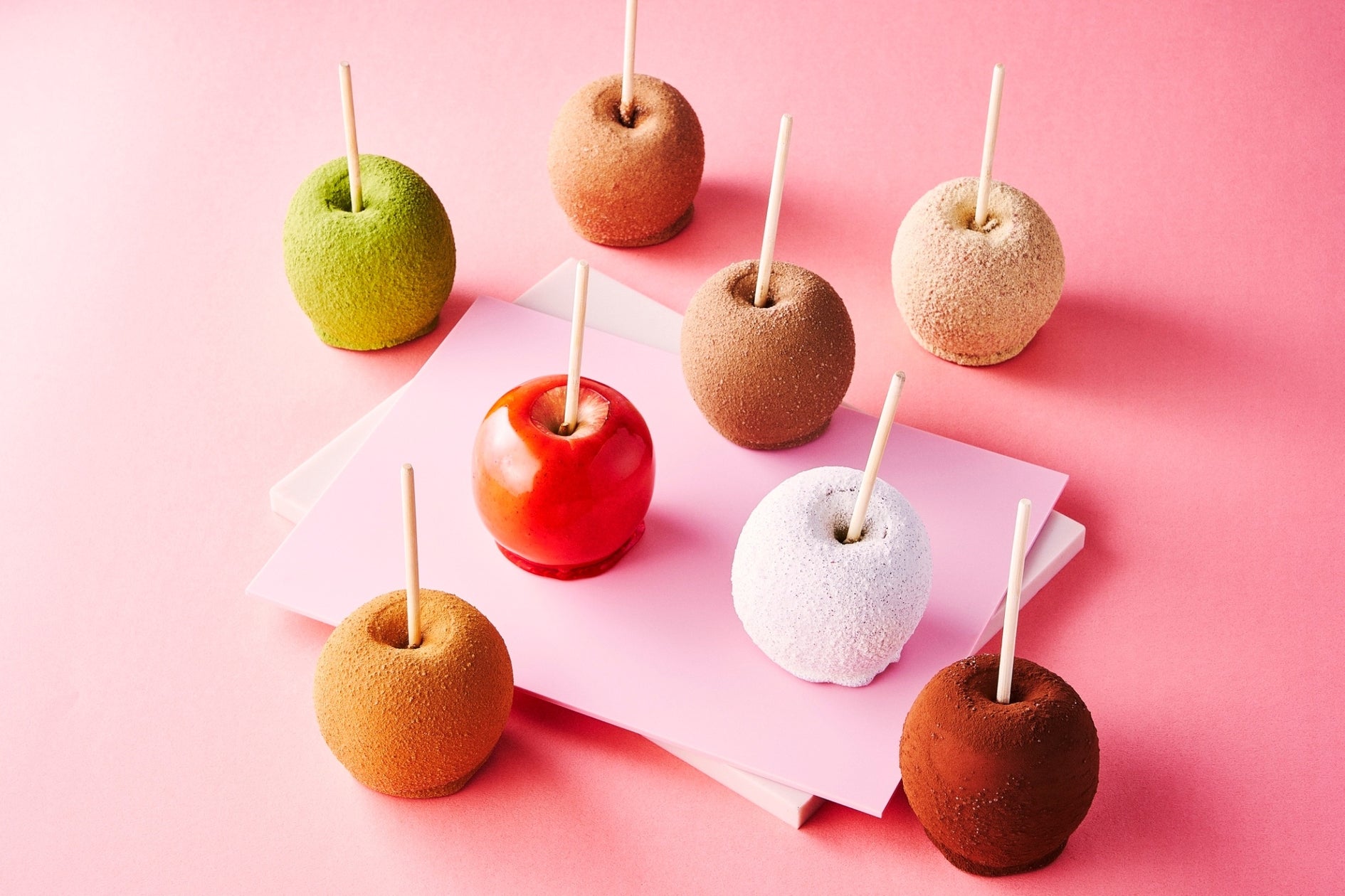 毎⽉その時期に合うブランドりんごを全国から取り寄せ、選別して作る本格りんご飴。りんごは「硬さ」「⽢さ」「酸味」「⾹り」「果汁」が、季節や産地によって全く異なるため、旬のりんごの旨味を最⼤限に引き出すための、飴作りの⼯程にもこだわりがあります。ジューシーな果汁を感じるりんごの⾷感と飴の⾷感に⼀体感が⽣まれるようにパリパリに仕上げ、飴は⼝の中で⼀瞬で溶け混ざり合うよう薄くコーティングしています。そのため⽢みの中に感じるりんご本来の酸味と⽢い⾹りが⼝いっぱいに広がります。