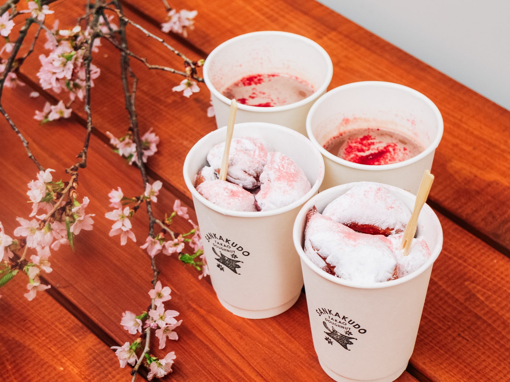 そんな高尾山の麓にある「高尾 さんかく堂」で、お花見をより楽しんでいただくためにお花見シーズン限定で、桜のホットチョコレートと桜パウダーのかかったミニドーナツを特別価格でご用意いたしました。