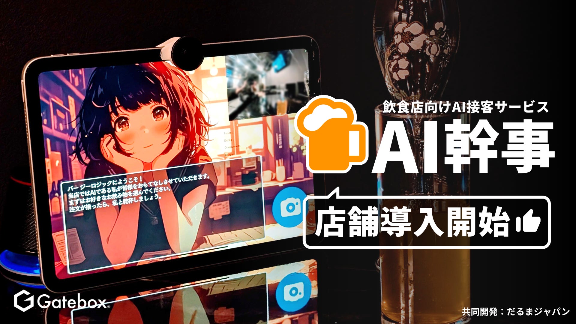 Gatebox株式会社とだるまジャパン合同会社は、飲食店向けAI接客サービス「AI幹事」を渋谷に新規オープンした「Bar ZEALOGIC」で本日9月6日(金)から導入開始しました。