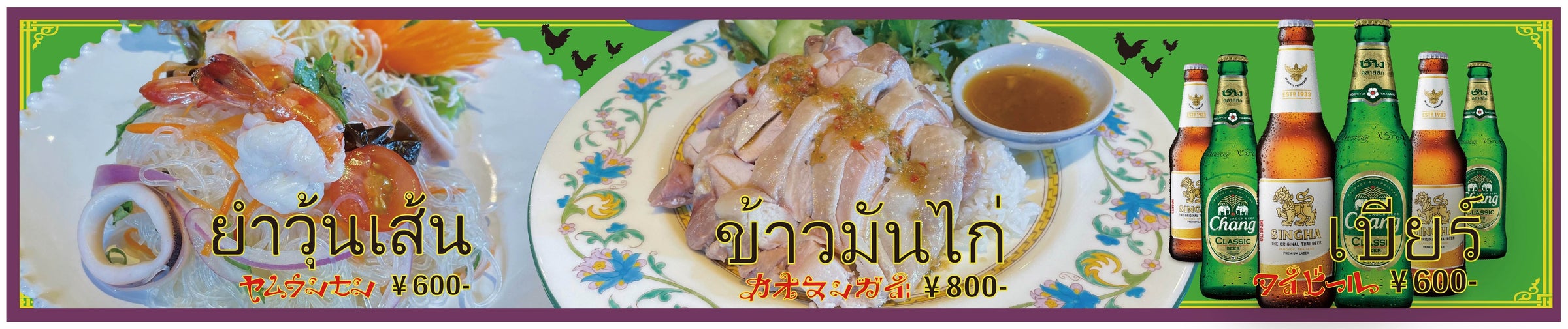 ※ヤムウンセン、カオマンガイはテイクアウト可能。
