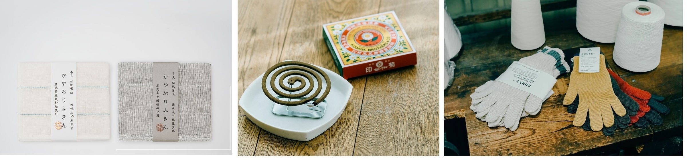 右上:「除虫菊」という菊を主成分に天然由来の原料のみで、昔ながらの製法でつくった和歌山「児玉兄弟商会」の虫除け線香