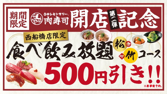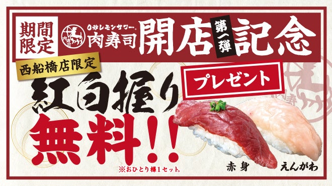 - 千葉初出店!『0秒レモンサワー 西船橋 肉寿司』が2023年10月6日(金)グランドオープン!!!