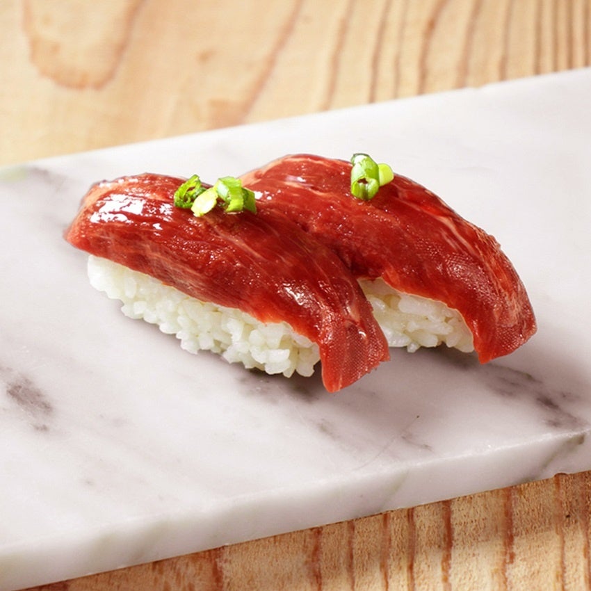 元祖「肉寿司」では、厳選された素材・安全性と食感や旨味の両立を追及した調理法・素材の旨味を引き立たせる調味料にこだわって、肉寿司を提供しています。特に生食での提供が難しい牛肉・豚肉などは、安全性を保ちながらも考え抜かれた加熱・調理方法で、旨味の流出を最小限に抑えつつ、お客様への生食に近い食感と風味、旨味が凝縮された肉寿司のご提供を実現いたしました。全国に28店舗展開しており、これからも多くのお客様にこだわりのつまった安全な肉寿司を提供して参ります。