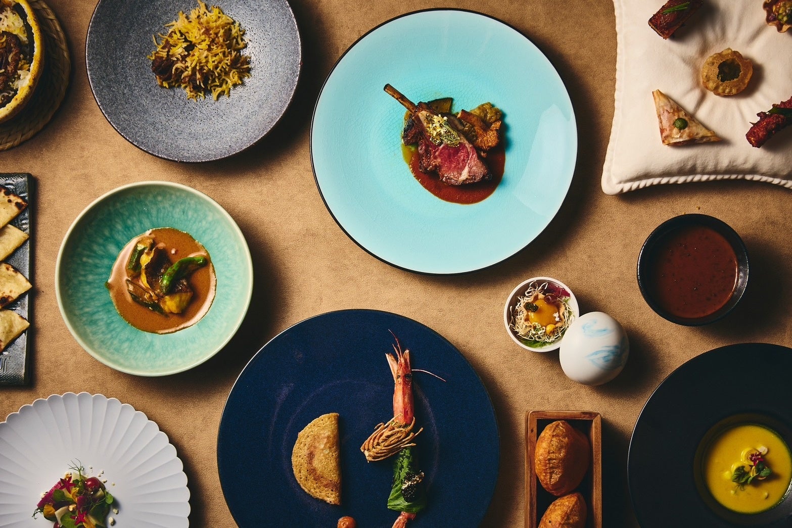 メニューは、インドの文化と伝統的な料理法をベースに、世界の調理技術と日本の旬の食材を取り入れながら構成。最初の一口目からインドに誘い、コースが進むごとにより深く、奥深い世界を堪能していただけます。