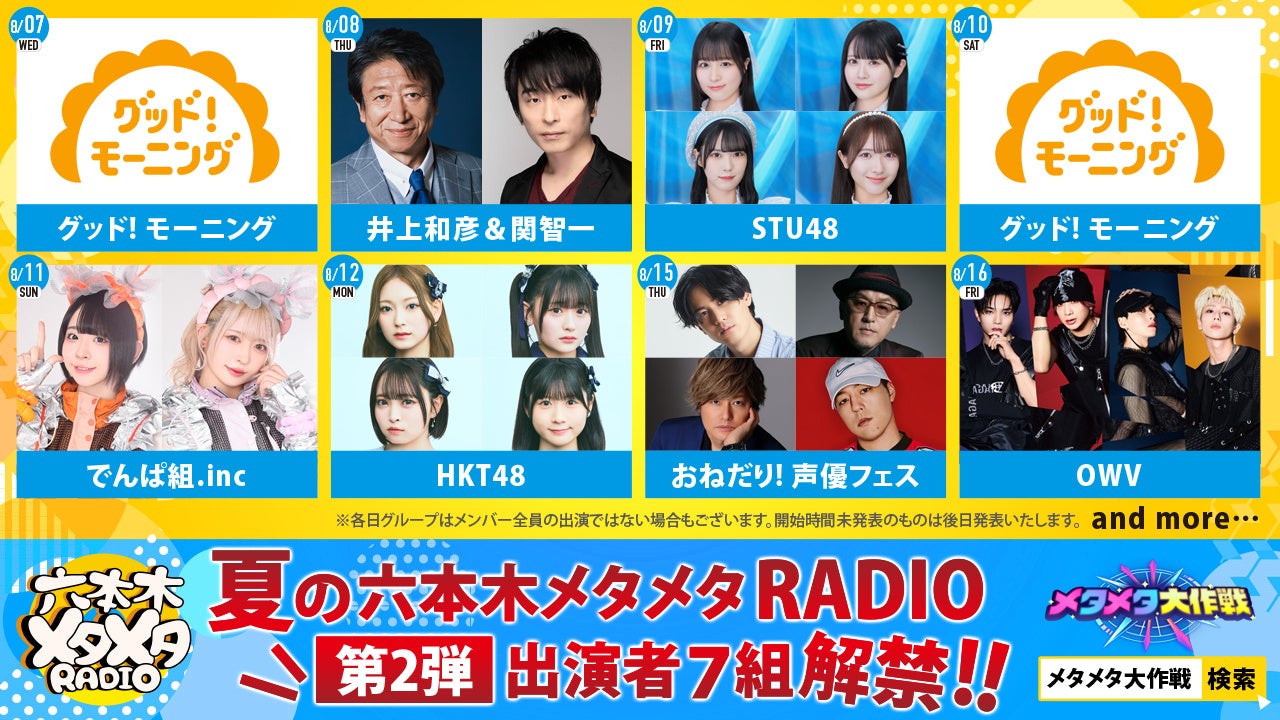 イベント最終日の9月1日(日)まで、さらに多くの方に来場していただくため、勢いそのままに生配信ラジオ風企画の「六本木メタメタRADIO」に追加出演者が決定しました。