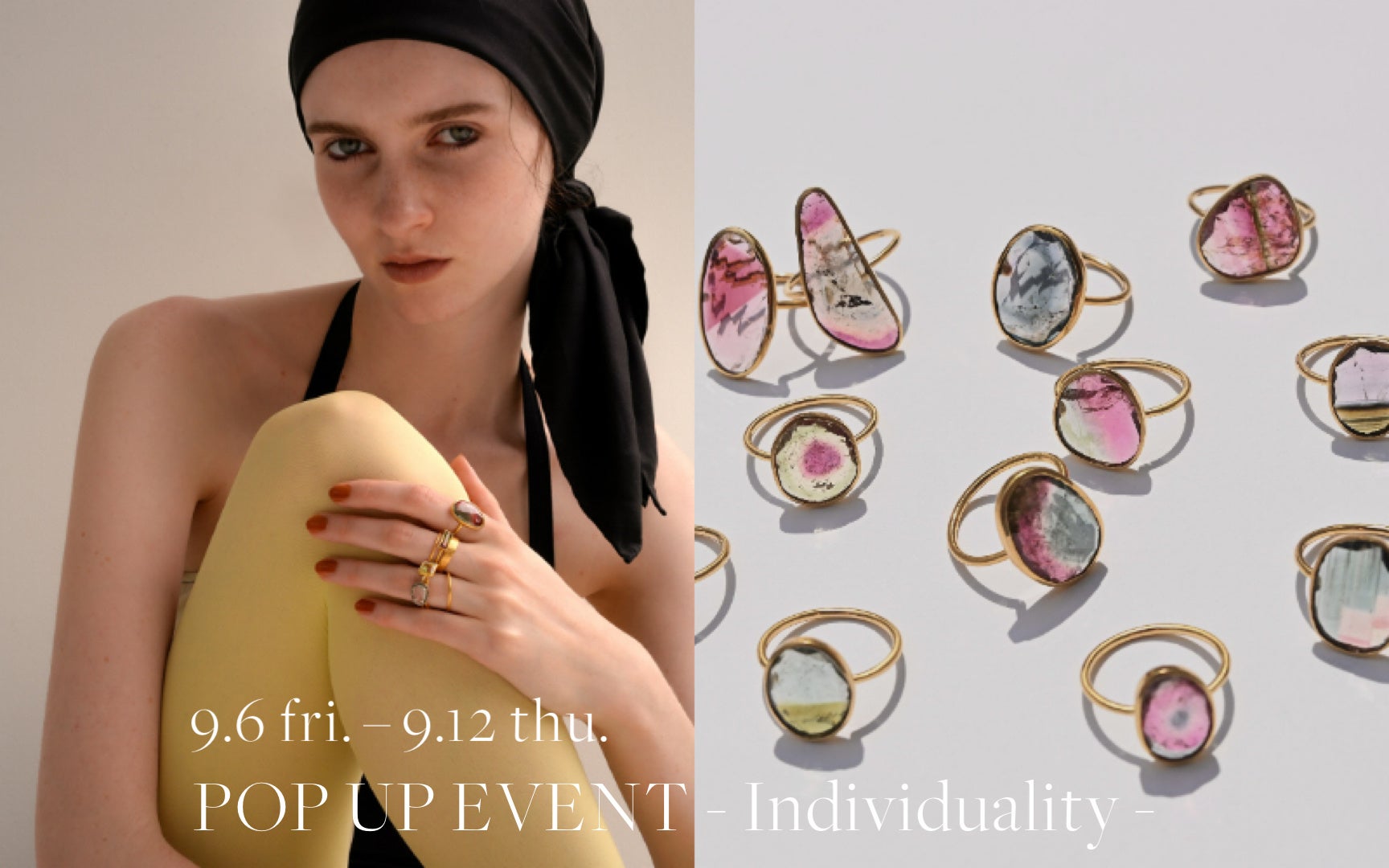 ありのままの美しさや自分らしさを表現する「Individuality」をテーマに掲げ、色とりどりの煌めくカラーストーンジュエリーが絢爛に並びます。