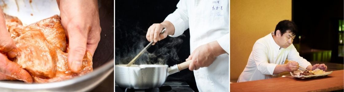 代表メニュー「国産豚の麹漬けスペアリブ」に加え、高木シェフが営む「京料理 たか木」でも使用されている、丁寧にとった“まぐろ節”の出汁が決め手の「羽釜で炊き上げる“鯛めし”」など全5品セット。