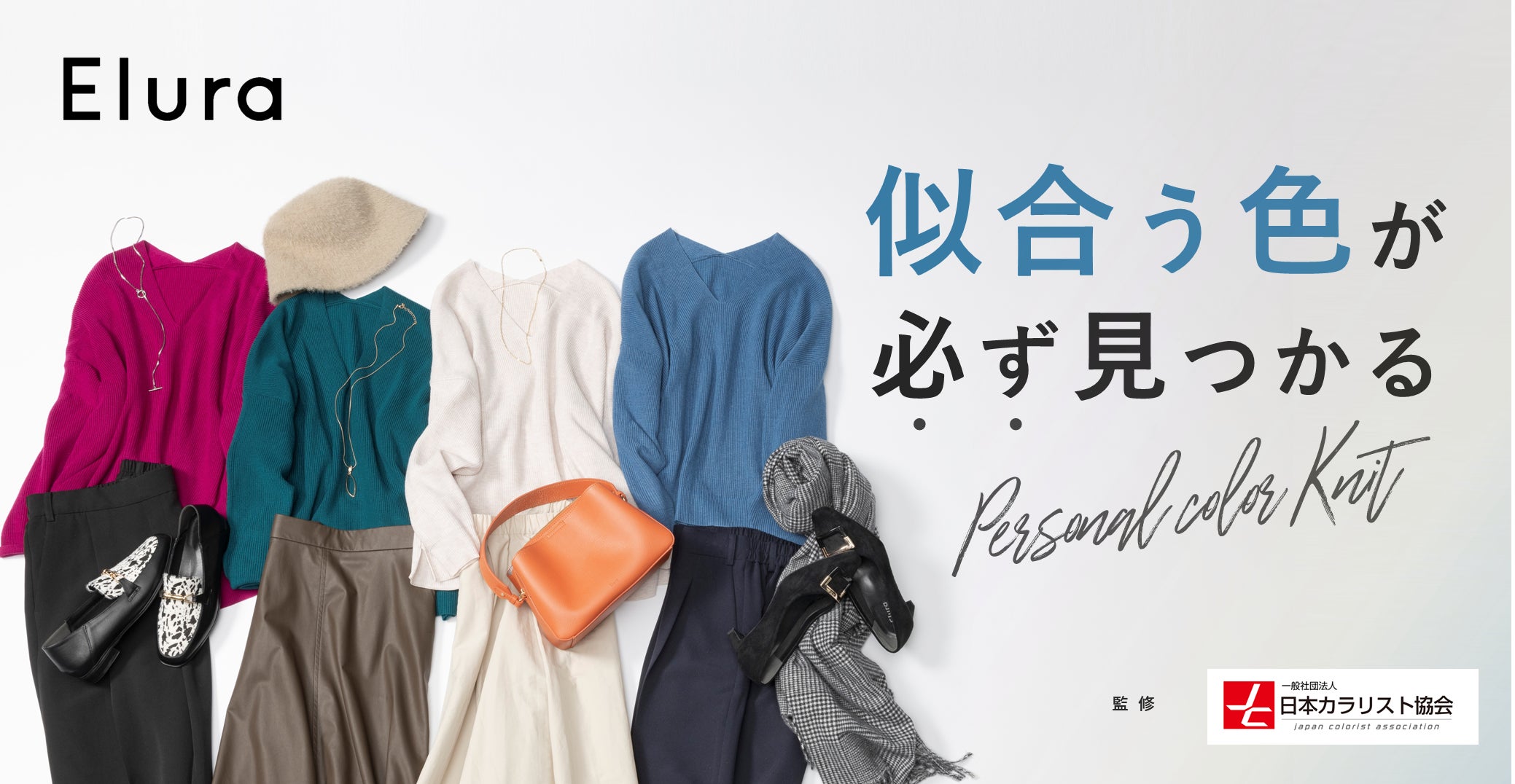 今回は、「似合う色がわからない…」「若いころ似合っていた色が似合わなくなってしまった」「何を着ても顔色がくすんでしまう…」など、大人女性ならではの色に関する洋服選びのお悩みに着目。Eluraで毎シーズン大人気の「抜け感Vネックニット」を、日本カラリスト協会に監修いただき、色彩理論に基づいたパーソナルカラーに対応した全12色展開を開始します。日本カラリスト協会はパーソナルカラリスト検定を主宰し、これまで7万人のカラリストを輩出し、昨今のパーソナルカラーブームを牽引してきた、日本を代表する色のスペシャリスト。信頼性ある理論に基づいた「似合う色が必ず見つかる」展開となっています。