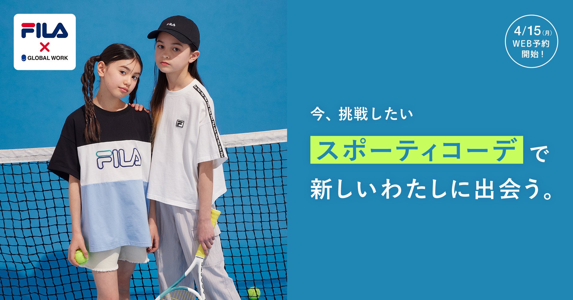 「Play fashion!」をミッションに掲げ、”グッドコミュニティ共創カンパニー”を目指す株式会社アダストリア(本部:東京都渋谷区渋谷2-21-1、代表取締役社長:木村 治)が展開するGLOBAL WORK(グローバルワーク)のキッズウエア「GLOBAL WORK KIDS」から、「FILA」とのコラボレーションアイテムが登場、4月15日(月)より予約販売をスタートいたします。