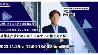 株式会社SHINSEKAI Technologies(本社:東京都渋谷区、代表取締役社長:大社武、以下:当社)は、2023年11月28日(火)12:00より無料ウェビナー「CRM、コミュニティ担当者必見!コミュマネのスペシャリストが語る、成...